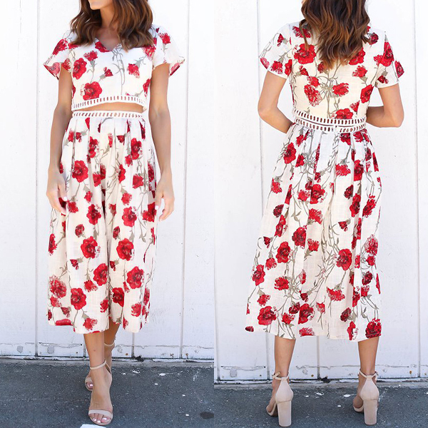 v-neck crop top and a high waist skirt,this two-piece set can give you an easy transition from