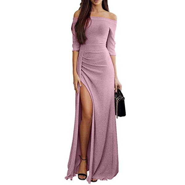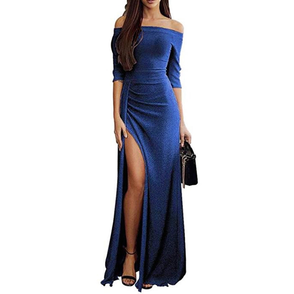 the off-shoulder boat neck and side slit hem design can lend you a more alluring look. Paired with