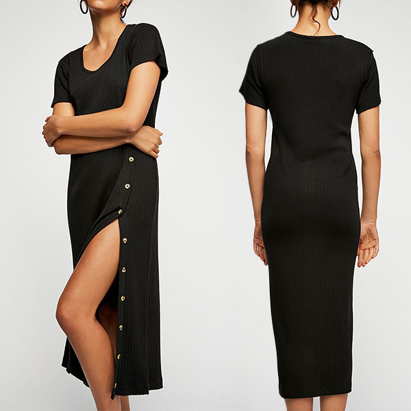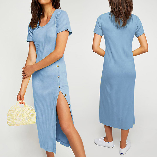 round neck and soft fabric,this dress can give you a comfortable day,while the side-slit hem design makes this