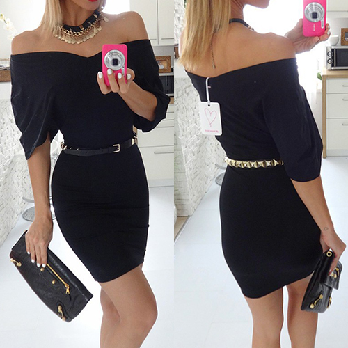 solid color,with a sexy slash neck,dolman sleeve and a fit silhouette,chic yet sexy. Decorated