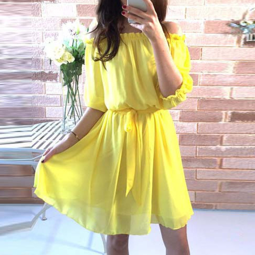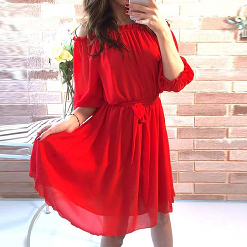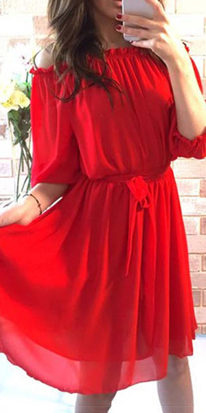 This dress makes it easy for any girl to look effortless charming. Solid color style,with a sexy slash neck and half sleeve