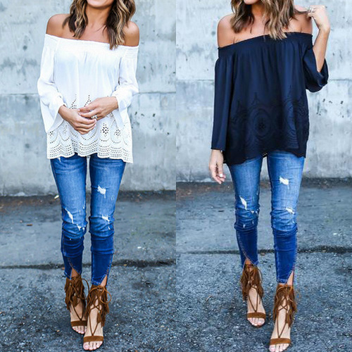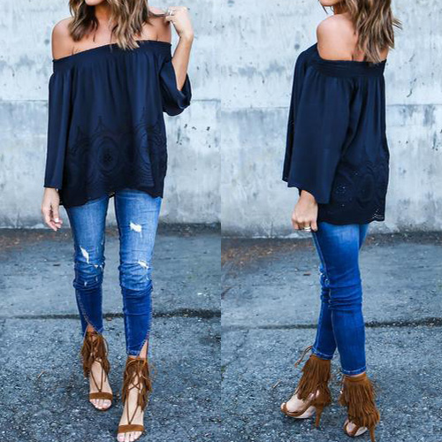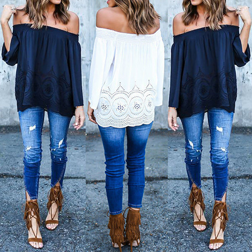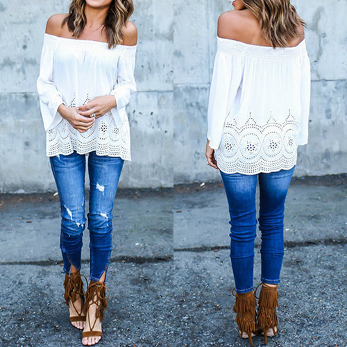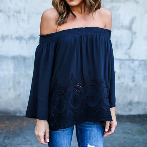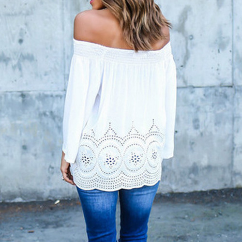 with a sexy slash neck and hollow out crochet spliced design,sexy and charming. Plus,its comfortable
