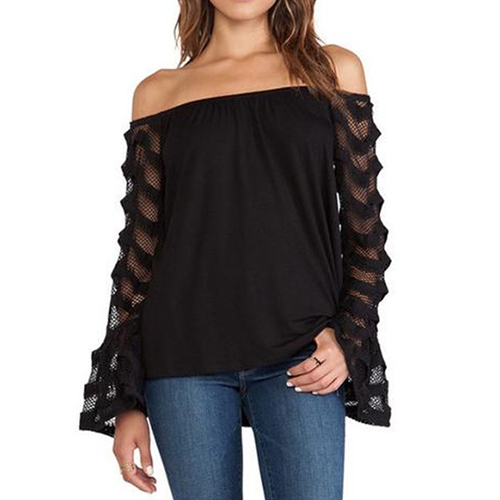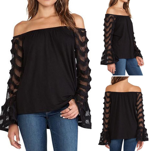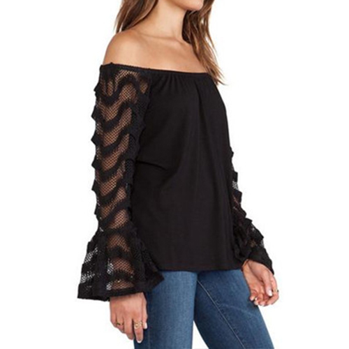 Designed with a sexy slash neck and lace spliced long sleeve,this tops can give you an all day