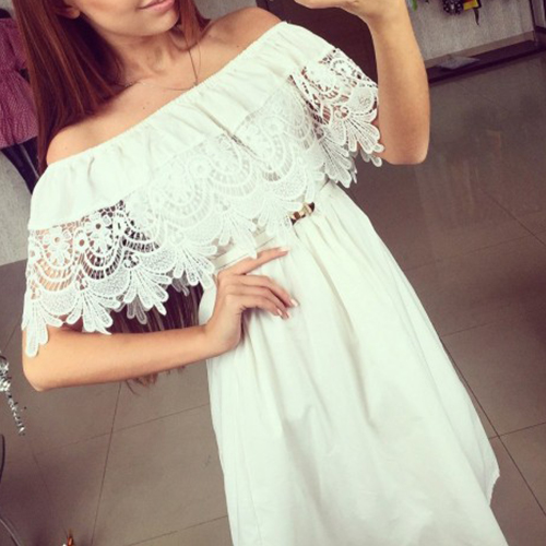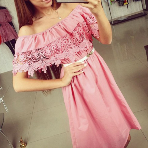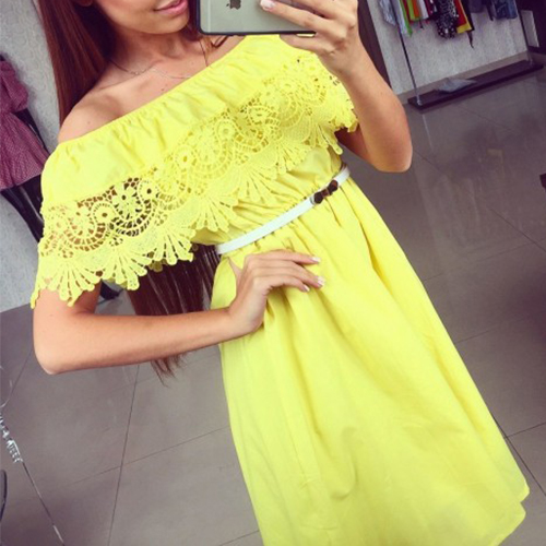 quite the impression. And lace spliced design makes it look more feminine. Decorated with a waistband
