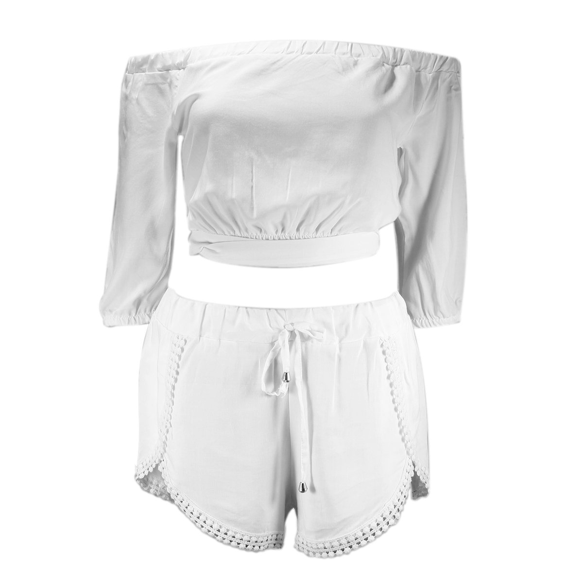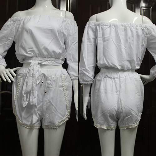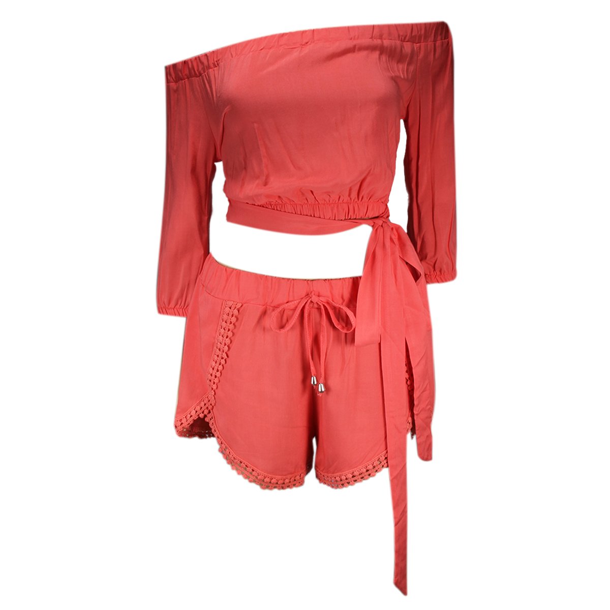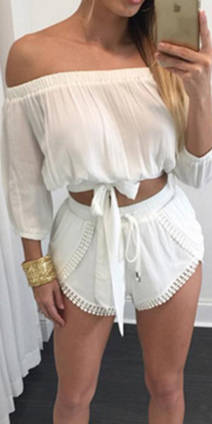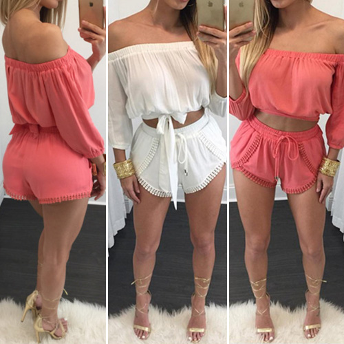 Solid color style,including a long sleeve slash neck crop tops and a shorts,this two-piece set can give you