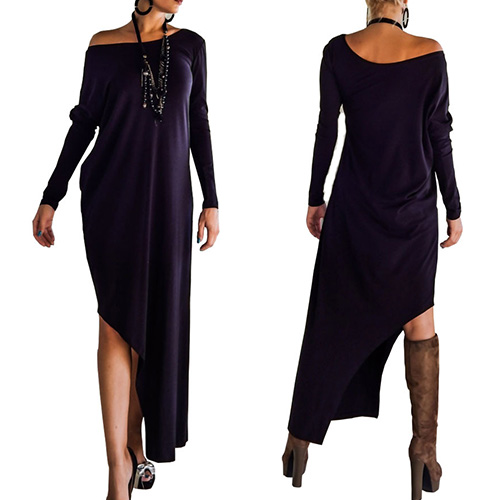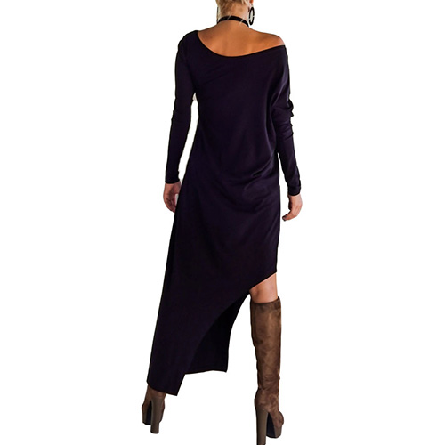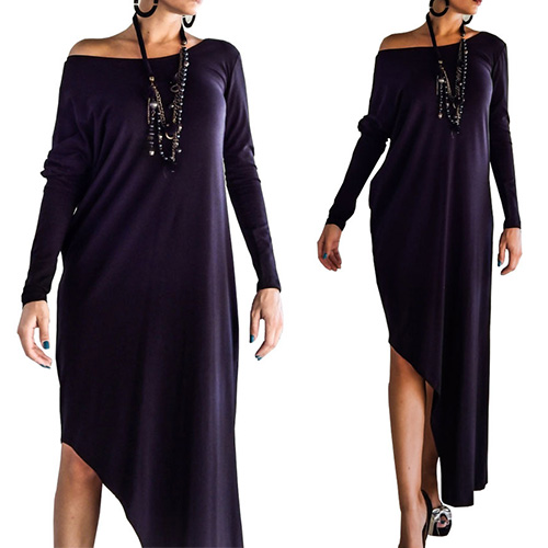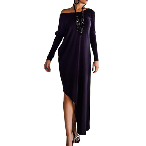 an exception. Features mysterious and flattering black color,with a sexy slash neck and an irregular
