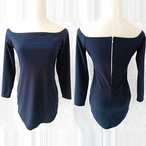 Crafted from stretch knitted fabric,with a fit silhouette and long sleeve design. Plus,its slash neck
