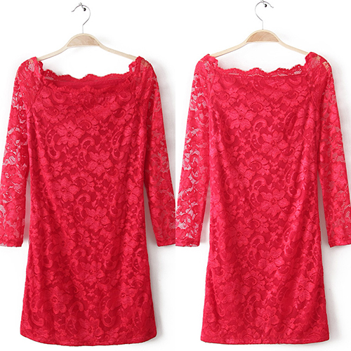 As a mature lady,ho could you lack of a lace dress in your closet? Look at this one,featuring a sexy slash neck,