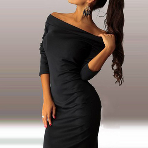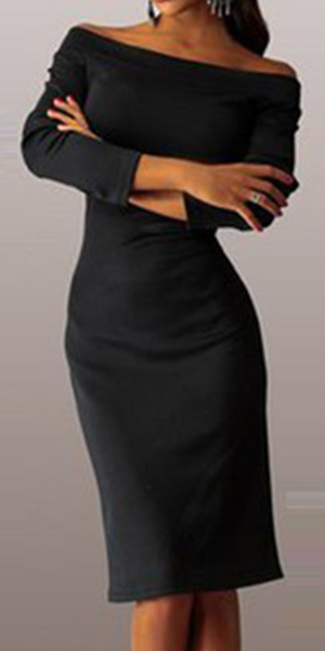 solid color,its slash neck design makes it look more sultry. Paired with your same color heels,