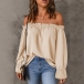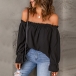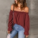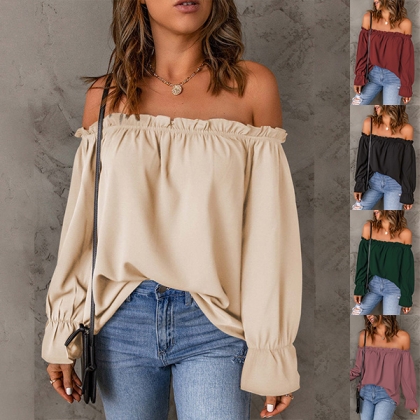 Sexy Slash Neck Long Sleeve Solid Color Tops