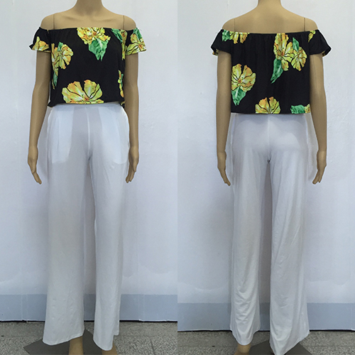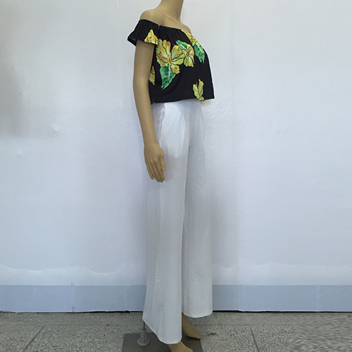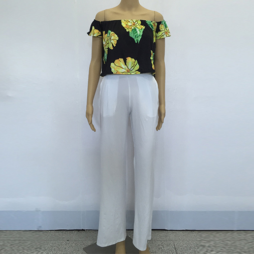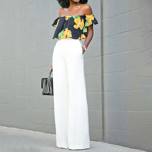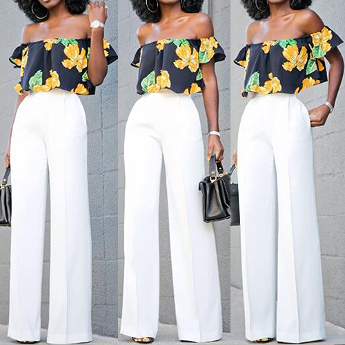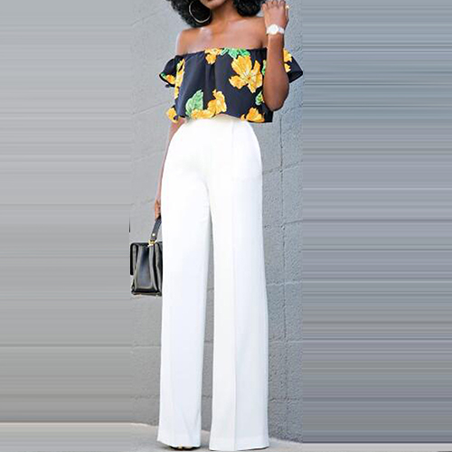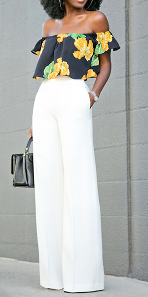 floral print tops and a high waist white wide leg pants,this two-piece set can give you a sexy and