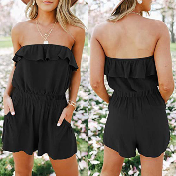 Add some new blood to your closet with this romper. Solid color style,designed with a sexy slash neck,shortsleeve and an elastic waist,this romper can keep you cozy yet sexy. Of course it can give you a different style.