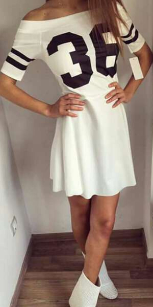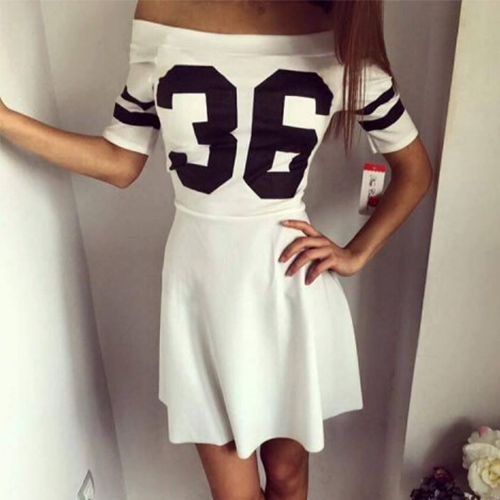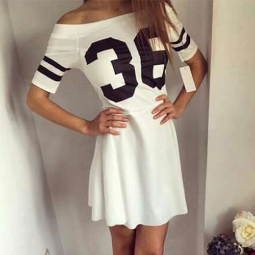 love this dress! Numbers printed style,with short sleeve and slash neck design,