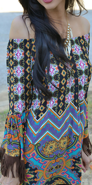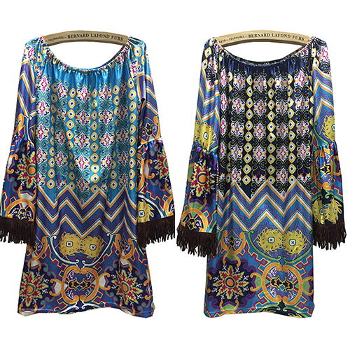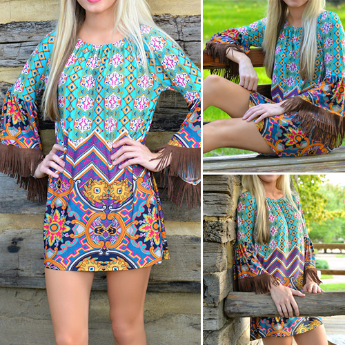 with a slash neck,sexy and charming. And cuff with tassel design makes it look more chic. Paired with your favourite sandals.