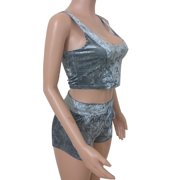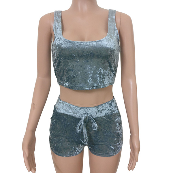 Solid color style,including a sleeveless round neck crop top and a high waist shorts,this two-piece set can easily