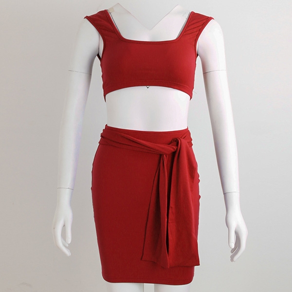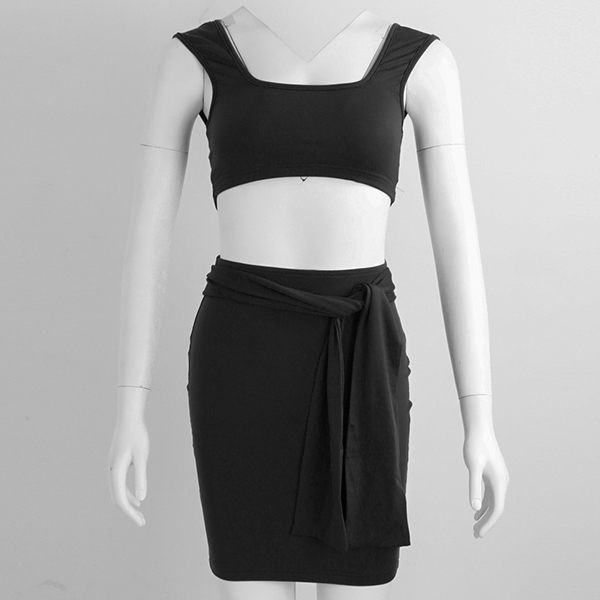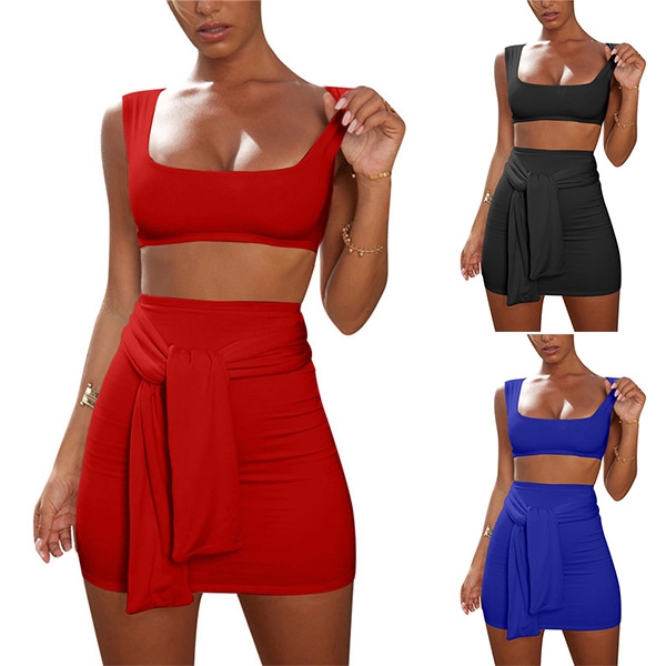 crop top and a high waist skirt,this two-piece set can showcase your seductive curve. Comes with