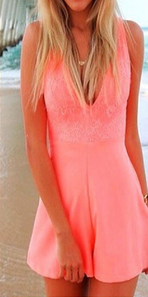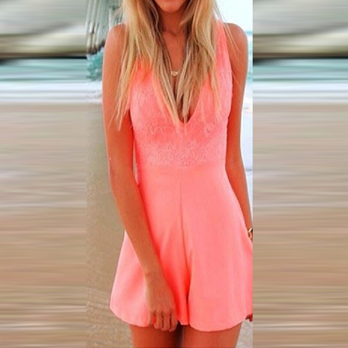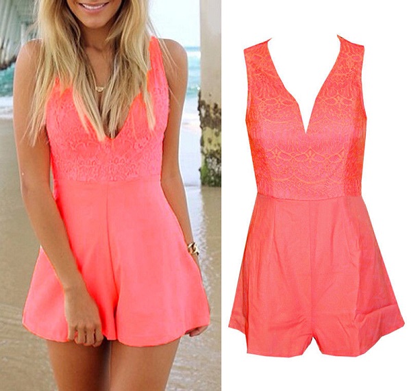 Wanna have a stylish and unique look in this summer? Then you can try this romper. Lace spliced