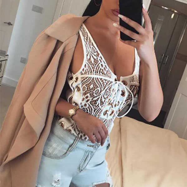 Seductive appeal can come easily when you wear this lace bodysuit. The tight silhouette design will