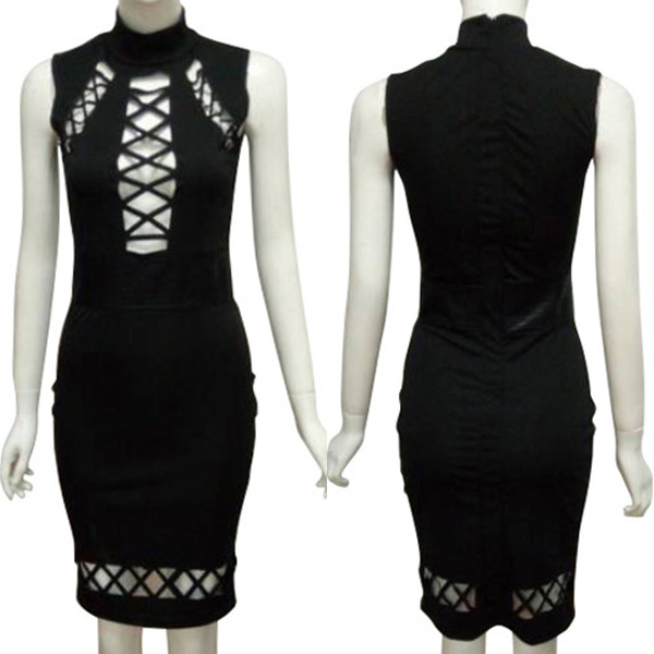 with sleeveless,mock neck and a bodycon silhouette,this dress is one of the best ways to demonstrate your seductive curve and