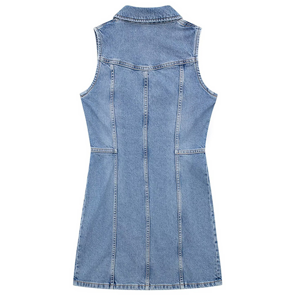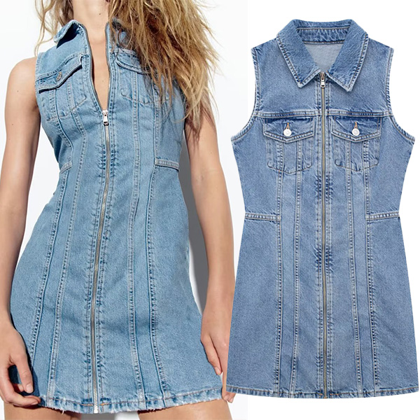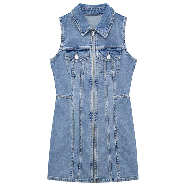 Sexy Sleeveless POLO Collar Front-zipper Slim Fit Denim Dress