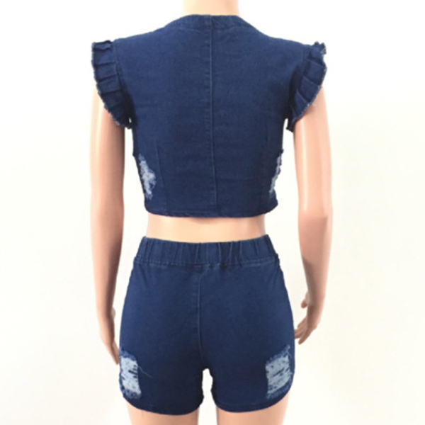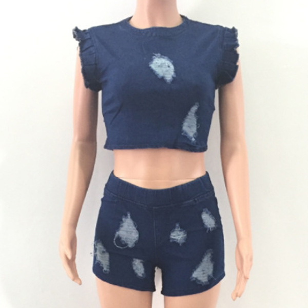 Easy to arouse a splash when you dress yourself up with this denim two-piece set. It consists of a sleeveless