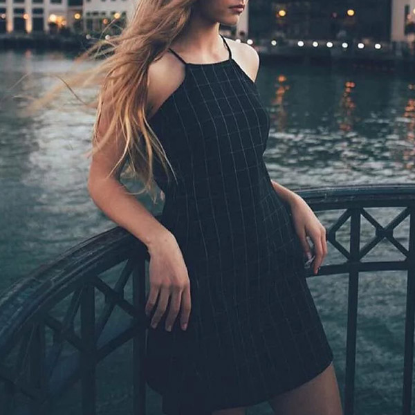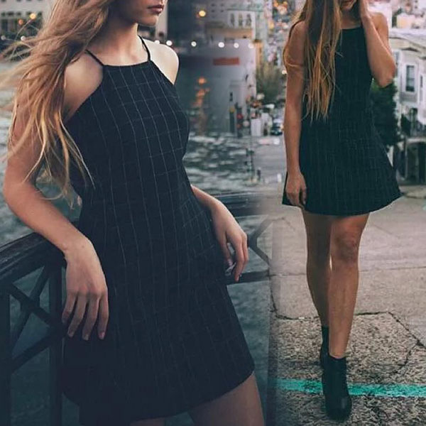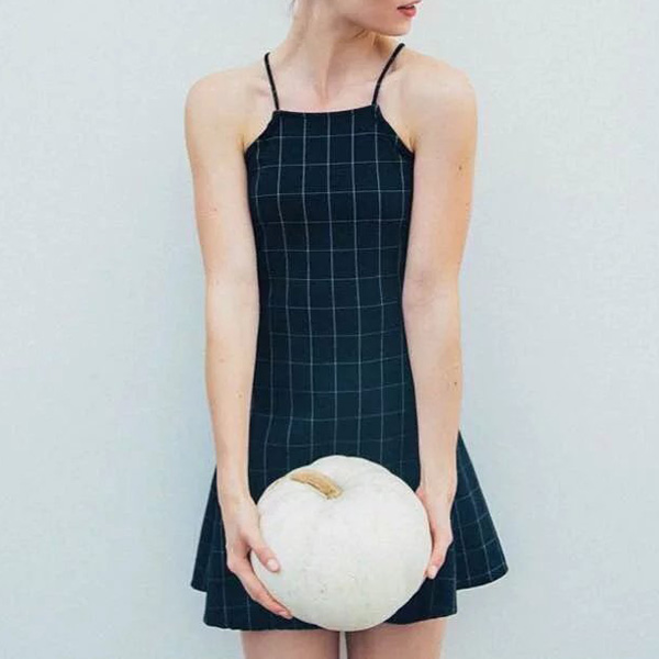 When dating with your boyfriend,you can choose this dress to draw his attention. Sling style,the plaid