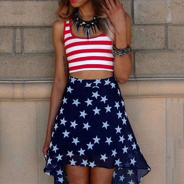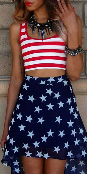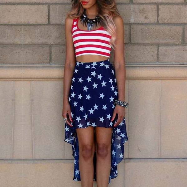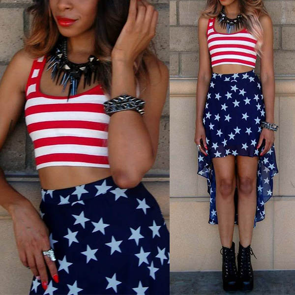 crop top and a star printed skirt,this skirt with high waist and high-low hem