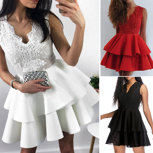 For any last-minute invitation,this dress can be a good choice. Its stunning details like v-neck and see-through