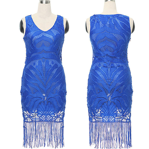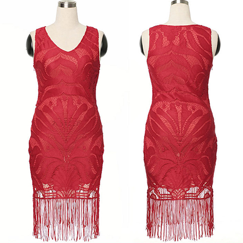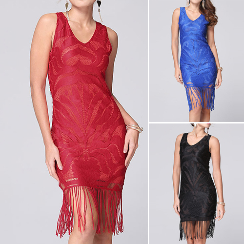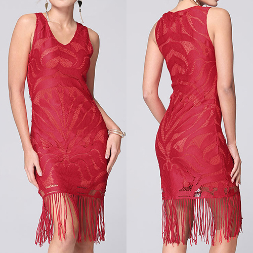 with sleeveless,v-neck and tassel hem,this clean cut, feminine creation is certainly one that will