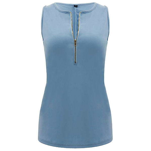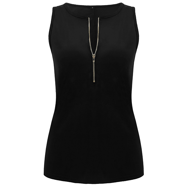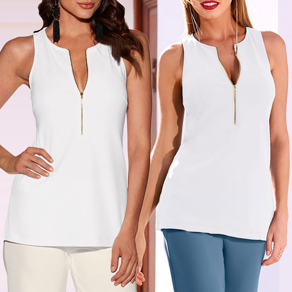 A bold sleeveless zipper-front top will complete your delicate everyday look. The soft and stretchy