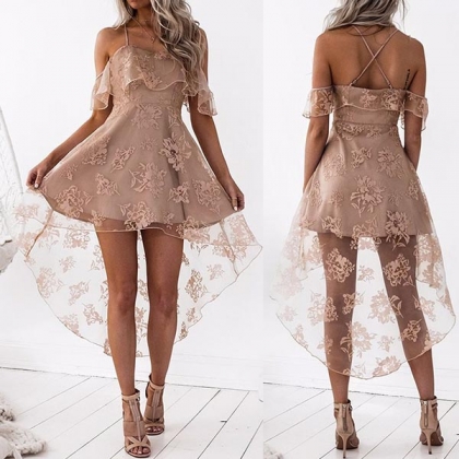 This dress is beautiful and fits for casual occasions.Solid color style,with printed pattern and lace spliced design,