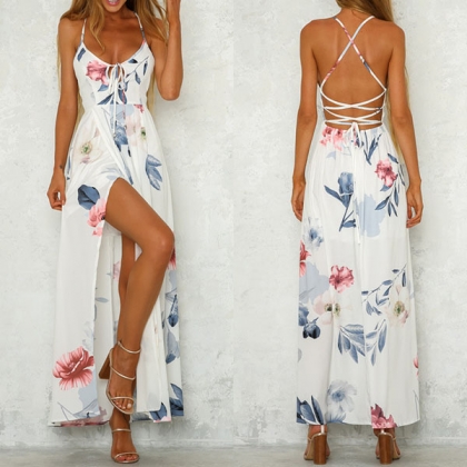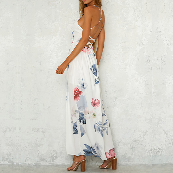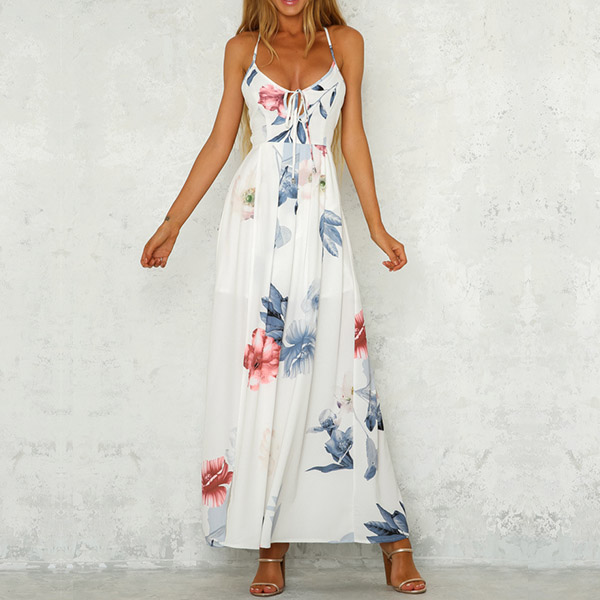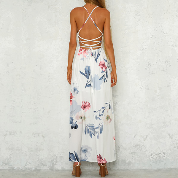 Sexy dress in soft fabric with a deep v-neck front and backless and narrow shoulder straps.