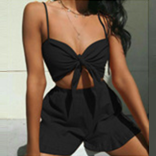 You can exude your feminine appeal easily when you opt for this girly set. Solid color style for a more