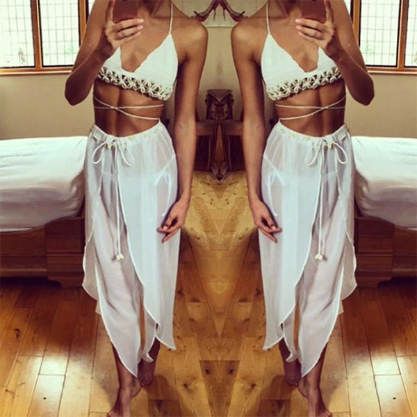 You would achieve for a more alluring beach look if you slip into this beach pants. See-through style,designed with high waist