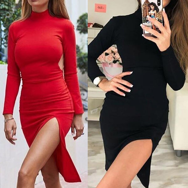 long sleeve,mock neck and a tight silhouette,this beautiful dress is perfect fit for your fancy events like