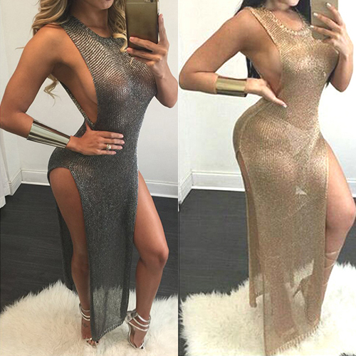 See-through style with slit hem design makes this dress so sexy and seductive.