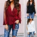 solid color style,finished with slit long sleeve and deep v-neck design,this wonderful piece of course can