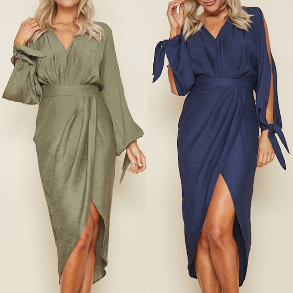 Comes with a solid color,its stunning details like v-neck,irregular hem and slit long sleeve
