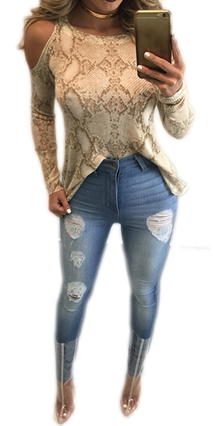 Have you tried this chic tops? An absolute eye-catching snakeskin printed design can easily make