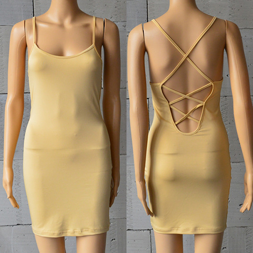 Sling style, this dress features solid color, back crossover and sleeveless design which can bring