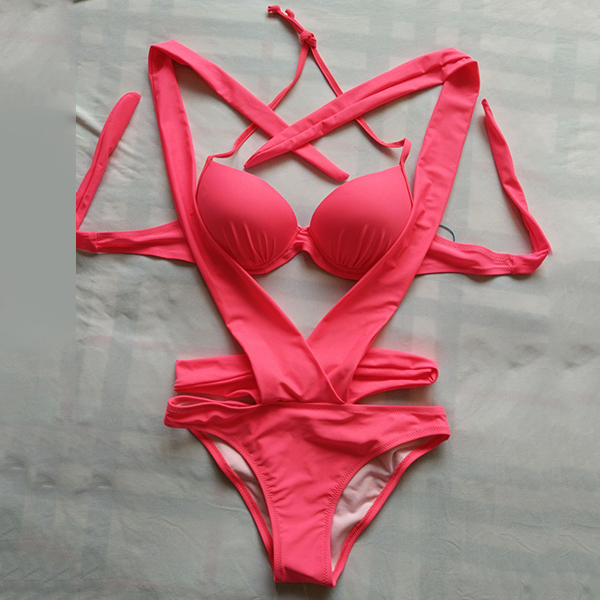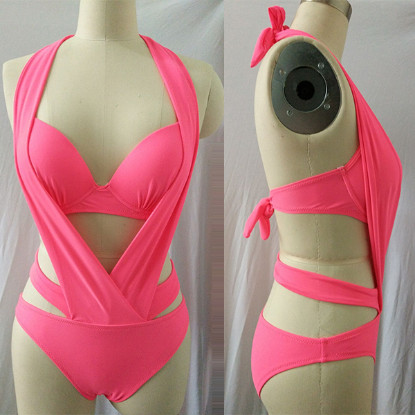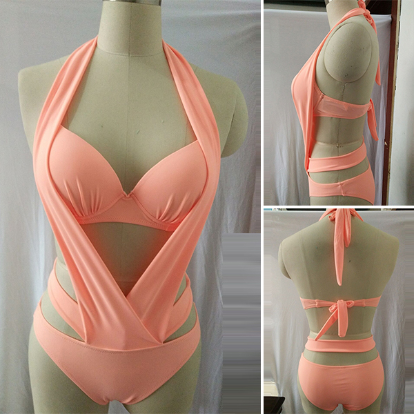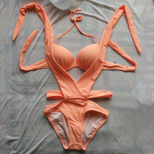 Wow,of course you would be the focus on the beach once you wear this swimsuit. Solid color style,with backless and hollow