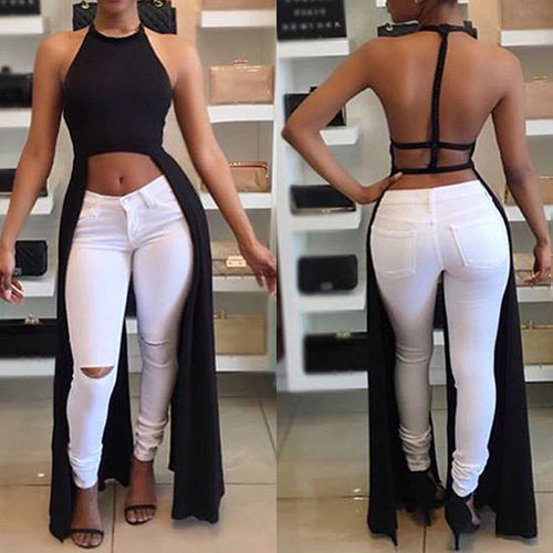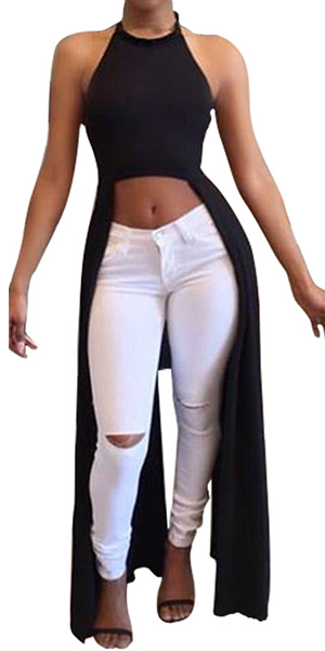 is paired with sleeveless, round neck and navel exposed design, this piece perfect shows your flirty