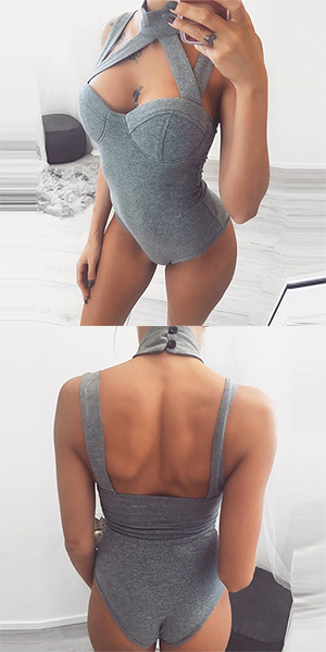 fatal feminine allure. With solid color, backless and sleeveless design, accompanied with hollow out