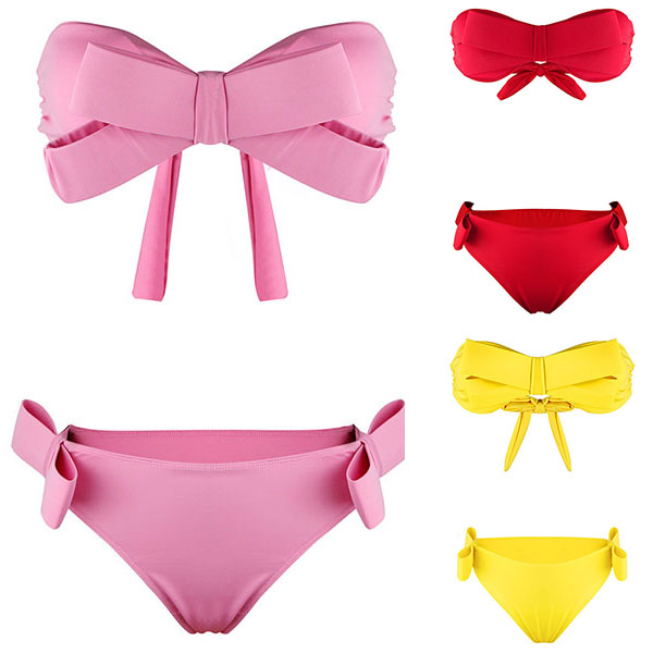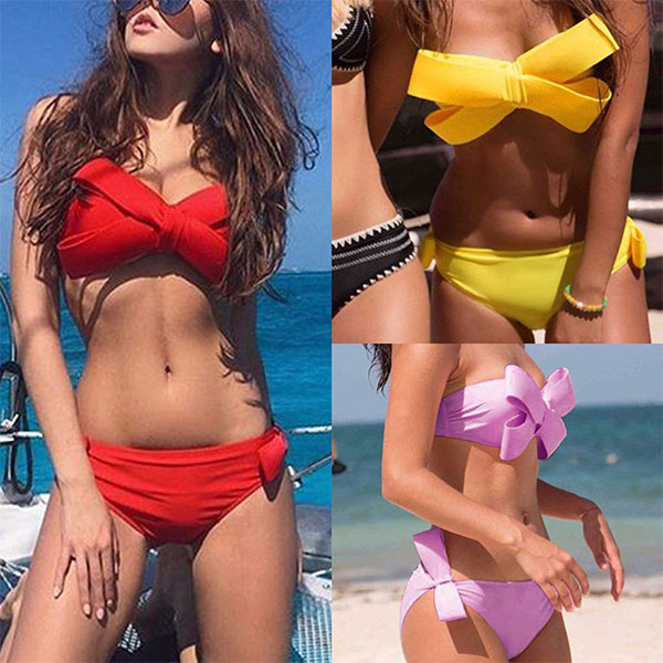 Solid color style,including a bowknot bandeau bikini top and a low-waist bikini bottom,