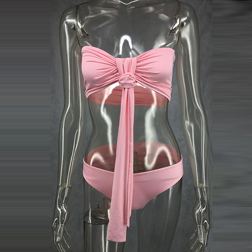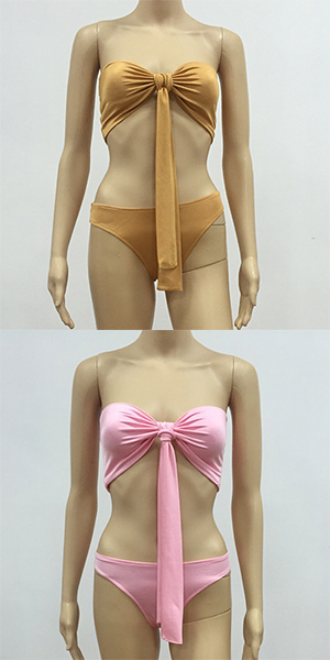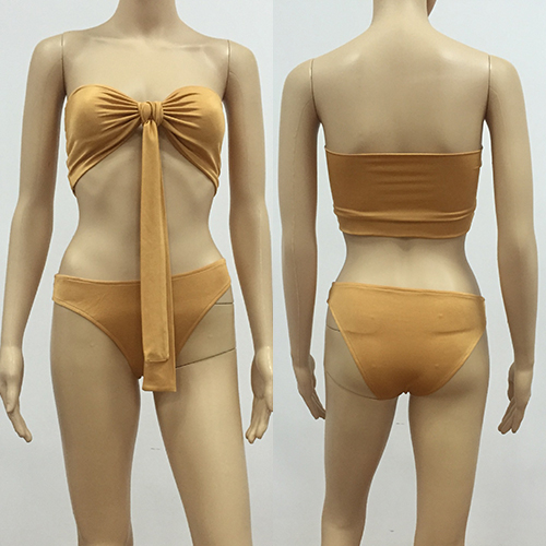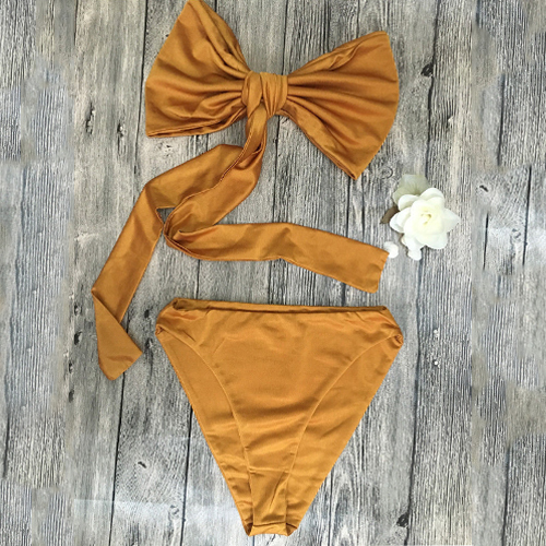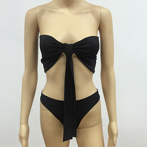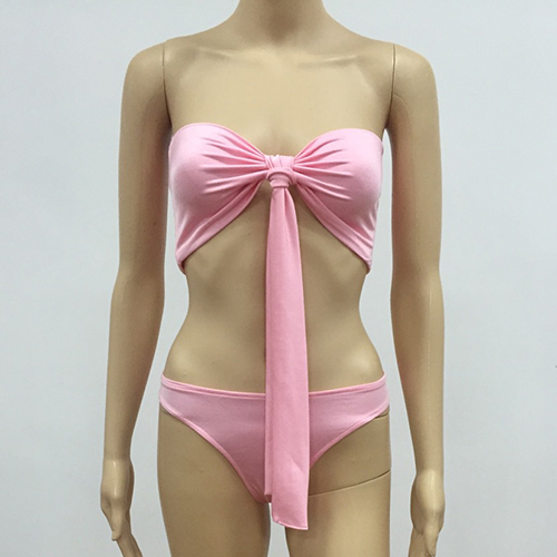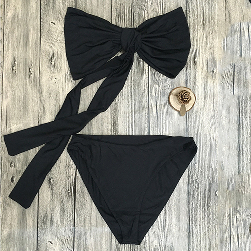 Solid color style,including a bowknot bandeau bra and a triangle briefs,this bikini