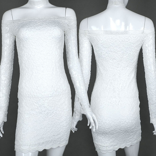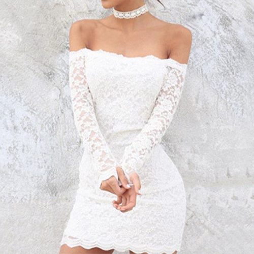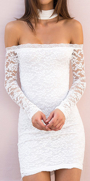 Create a perfect women with this lace dress! Choker neckline construction with off shoulder,