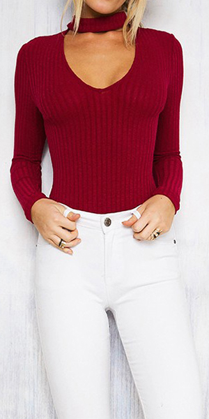 Your sexy and charming look would be completely shown via this bodysuit. V-neck and choker