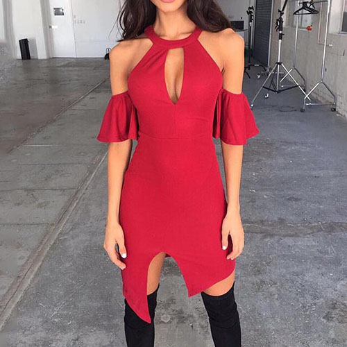 When you see this dress, you must be attracted by it because of its design. Cold shoulder and