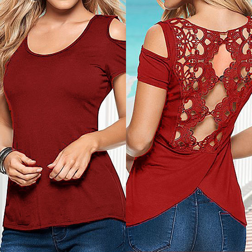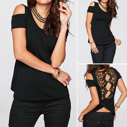 Pretty lace spliced and hollow out design would show your sexy back and figure. Cold shoulder