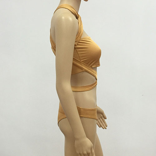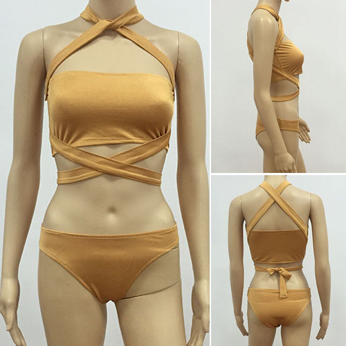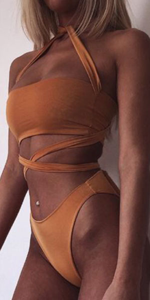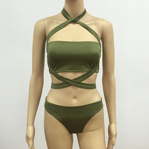 Make a splash on the beach with this two-piece swimsuit. Solid color style,its crossover hollow out